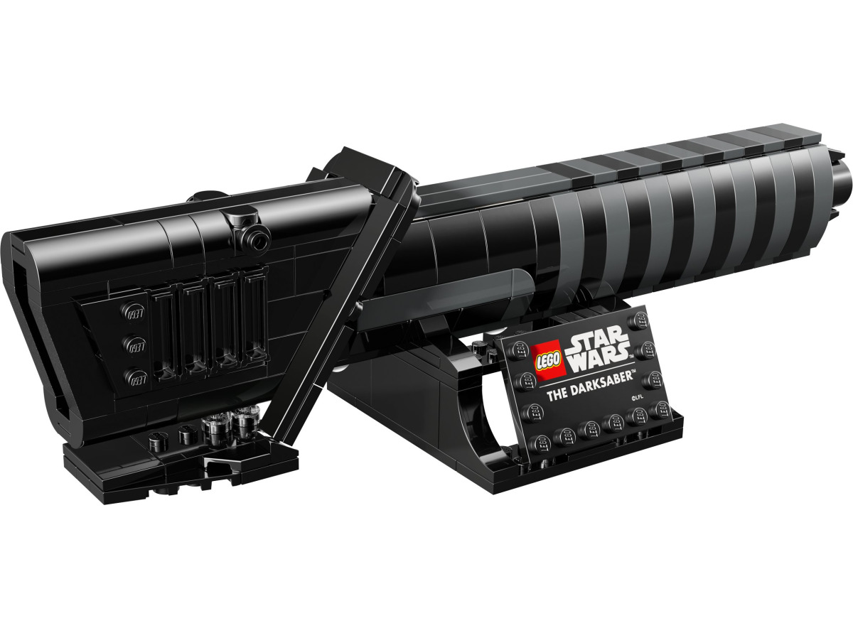 Le sabre noir est reconnaissable à sa lame sombre et à sa garde angulaire, fidèles au design vu dans Star Wars : The Mandalorian. Aucune minifigurine n'est incluse — le set est entièrement orienté exposition. Il est proposé comme cadeau avec conditions d'achat, ce qui peut en limiter l'accès indépendamment. Les sets Star Wars pour adultes de la gamme partagent ce format display sobre.